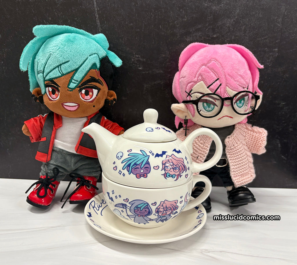 Includes:- Remo and Drake plush dolls- River St themed teapot and teacup set